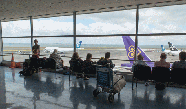 Auckland Airport's departure board shows that flights to Sydney at 1.10pm, Apia at 4.10pm, Gold Coast at 4.30pm and Melbourne at 6.35pm have been cancelled.