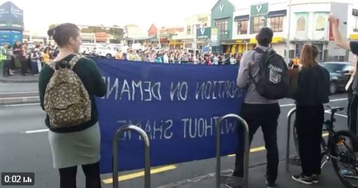 More than a hundred pro-life protesters are holding a prayer vigil across the road from Auckland Medical Aid Centre, on Dominion Road in Mt Eden.