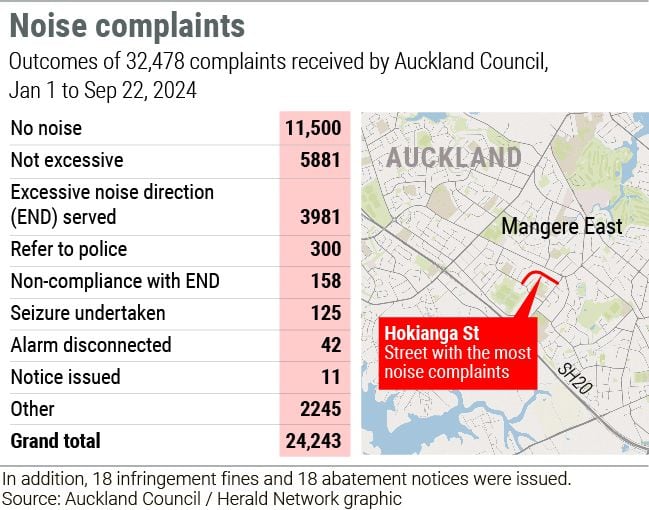Auckland Council said it received at least 25,000 noise complaints last year.