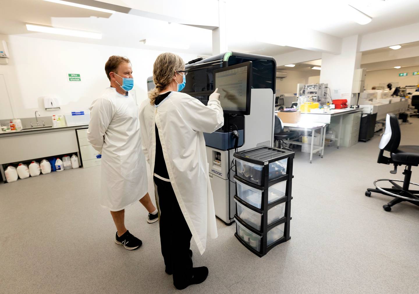 Labs had to gear up to triple Covid testing output in the Omicron outbreak here. Photo / APHG