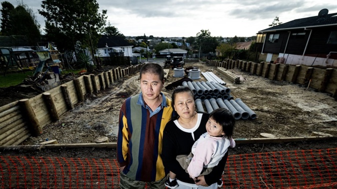 Meinan Qiu said she believed the hedge at the back of her New Lynn garden was 50 years old before it was chopped down by workers building homes on the property behind hers about two weeks ago.