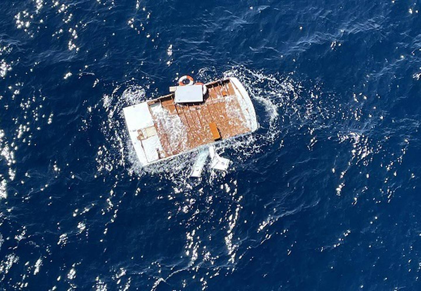 Wreckage of the Enchanter fishing boat floats on the surface of the ocean off the Northland coast. Photo / Supplied