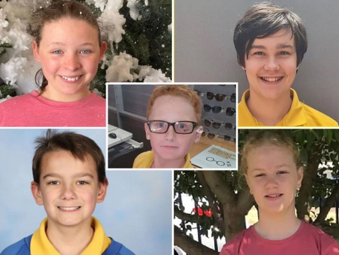 Victims of jumping castle tragedy: Peter Dodt (centre), Jalailah Jayne-Marie Jones (top-left), Jye Sheehan (top-right), Addison Stewart (bottom-right) and Zane Mellor (bottom-left).Â
