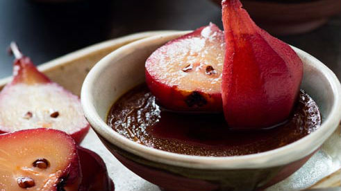 Sunday, 31 March 2019, 11:30amHot chocolate custard with red wine pears (serves 4) 400ml cream 4 tbsp caster sugar 100g good quality dark chocolate 1 vanilla...