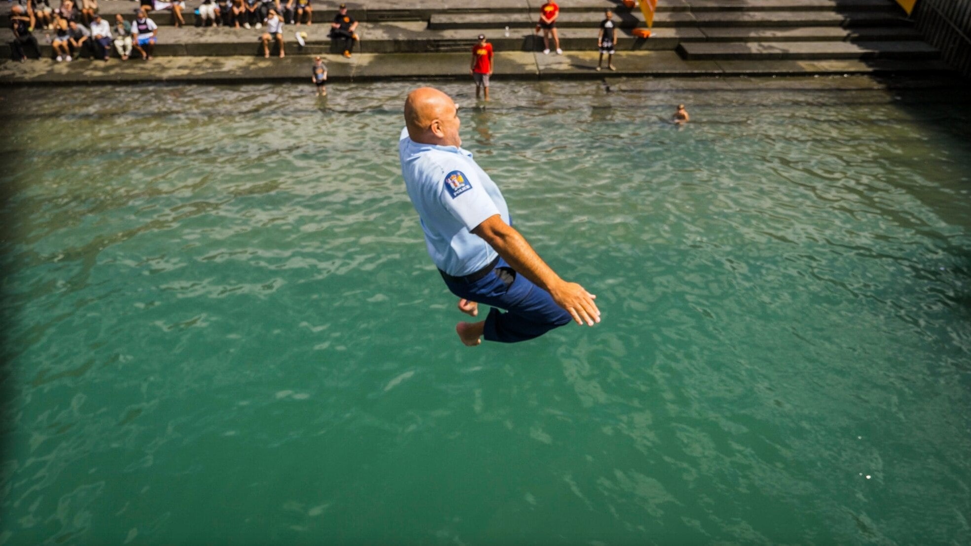 Watch: Auckland policeman, Vincent Kahui, makes a splash in Z Manu World Champs