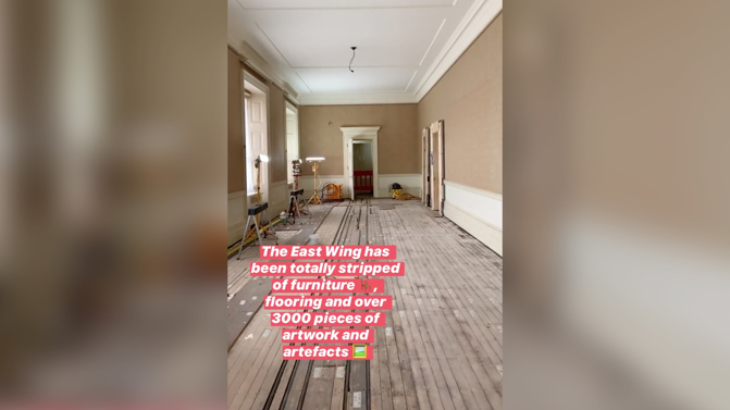 In a series of videos posted to the royals' Instagram page on Monday, the family's social media team toured a few of the building's ornate rooms and hallways, which have been turned into construction sites as part of the £369 million project.