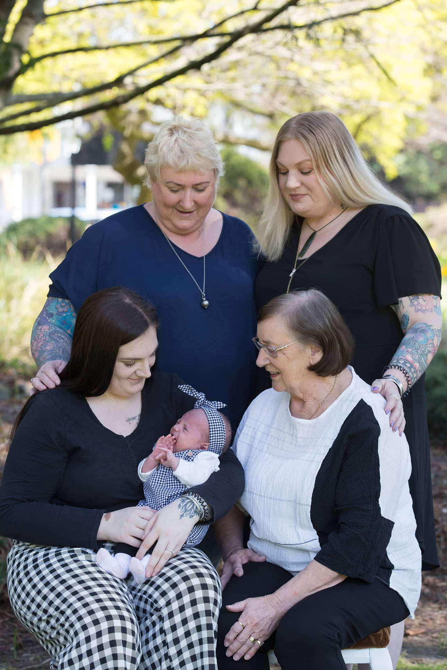 The Andrews are a five-generation family. Pictured are Christina and her daughter Selina Andrews (back), Cereese Andrews-Henry holding baby Laiana Henry and Doreen Andrews. Photo / SuppliedÂ