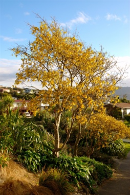 - GOLD MEDAL – the Kowhai (Sophora). You have to love a tree that smothers itself in gorgeous gold flowers, and there’s one for every part of NZ. A kowhai in flower is an iconic NZ sight, in fact it’s our national flower. It flowers in August and September and is a sign that spring is coming, losing its leaves right before flowering. Kowhai actually fix nitrogen in the soil creating their own fertiliser. That’s the kiwi DIY way! They’re tough, drought tolerant and there’s one to suit any size garden, even dwarf ones (Sophora prostrata).