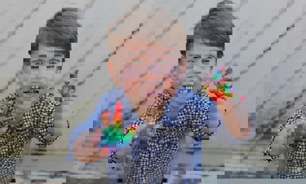 The four new pictures show the toddler creating hand prints with rainbow paint. Photo / Instagram