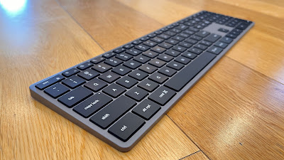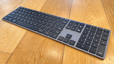 Which leaves us with the Slim X2 Bluetooth Backlit Keyboard. This shares the exact same profile as the Magic Keyboard that comes in the box with the iMac - slightly angled but not much as it's just so damn thin. Despite that, the keys have much better travel and response than the native Apple device. Obviously, the X2 is much wider, not only offering the addition of a dedicated number pad but other useful keys like Home, End, Page Up and Page Down. There are even three extra function keys.