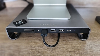 Satechi's Type-C Alumnium Monitor Stand Hub is the remedy for all this.
