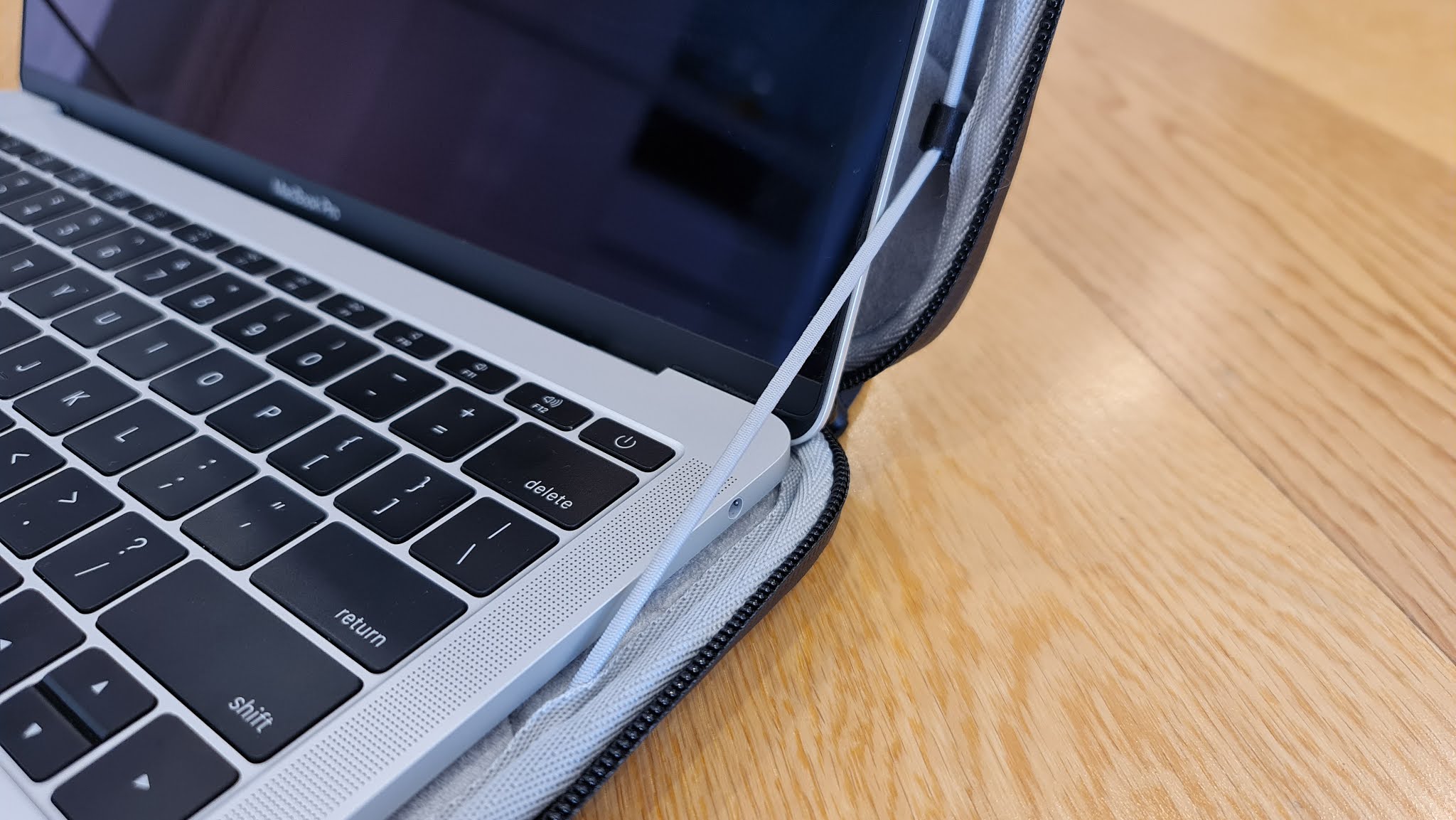 Buy it because everything else about it is absolutely first class, from the the premium materials to the way it feels so comfortable using it on your lap. The durable double zip means you can leave your laptop charging while still securely zipped up, wherever the charging port is located on your device. There's even good attention to detail with the way the leather handle retracts flush back into the edge of the case when you're not using it.