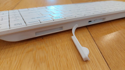 There's a similar rubber bung on the back of the Its Cool keyboard, sealing up its microUSB charging port and on/off switch. This plug is longer and stays connected, swivelling around to fit tidily into its stowaway cavity while the keyboard is charging.