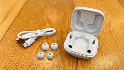 Firstly, in my view, neither of these designs are going to win any fashion awards. Both the Freedom and the Rise are a hybrid of the open-fit form-factor but still with silicone ear tips (three sizes included) for a secure fit. Both models have microphone stems pointing down although the stems are short and stubby on the Rise buds. To be honest, they're a bit clunky-looking on the Freedom too, but to look at, the Rise in particular seem to really stick out in all directions. There's nothing particularly smooth or streamlined about either model and they're only available in black or white.