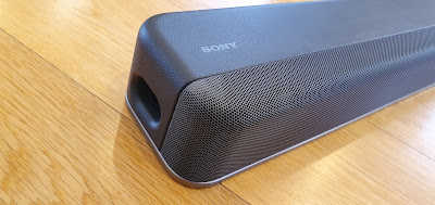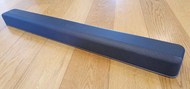 There's something almost retro about the look of it; the rounded corners, the textured surface of the leather-like casing... even the contrasting trim on the base of the device - for some reason there's a more organic feel to the HT-X8500 than a lot of those other, anonymously black and boring bars.