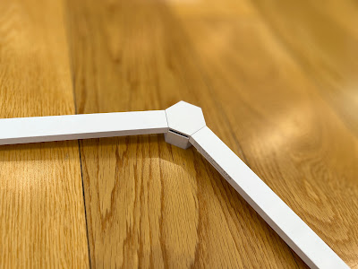 One issue I have with these new devices is how they look when they're not switched on. Unless you've mounted them on a white wall or ceiling, they stick out like... well... like long strips of white plastic. At least you can argue the squares, hexagons and triangles we've seen from Nanoleaf previously kind of look like some kind of piece of modern art, even when not illuminated. The Lines? Not so much. Watch this white space though... both black and pink snap-on skins are on the way with more designs being promised.