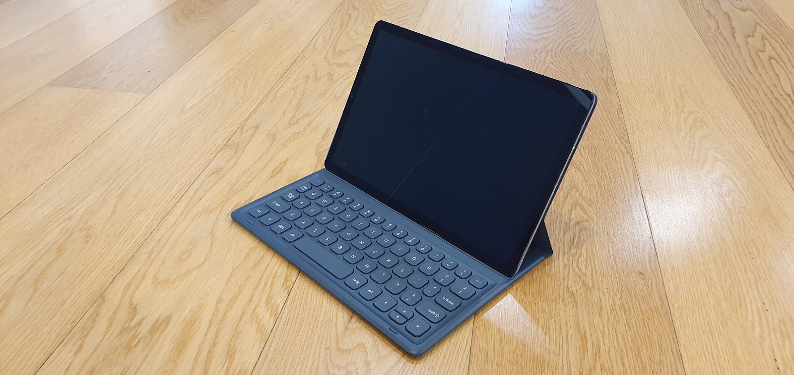 The keyboard cover gives you the option of tilting the Tab S5e up on your lap, notebook style which is certainly helpful when you're using both hands to type like I am now. I've read comments from some users complaining the keyboard feels a bit cramped, which is hardly surprising given it's only as wide as the tablet itself. The other main moan seems to be a lack of backlit keys, making typing in the dark more challenging. I'd suggest this is compromise well worth making in the interests of conserving battery life. I actually found the tactile response from the keys to be pretty sturdy, although if I typed too fast, sometimes the occasional keystroke got missed. I also would prefer to see a couple of extra keys - it's great to have four arrow keys to move the cursor around with, but I could really have done with an Escape/Go-Back key as some apps don't show that option on screen.