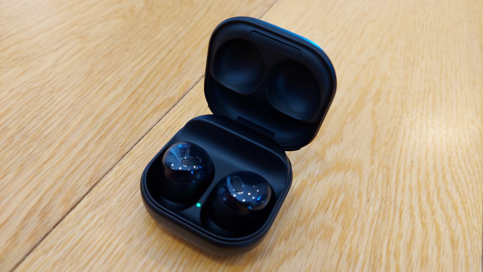 The case looks identical in shape and size to 2020's Buds Live - on the outside, although this year it's a matte finish so it won't get so fingerprinty. Open it up and you'll see the Buds Pro don't actually use all the space. I assume the rest is filled by battery, as these buds definitely last a long time on a single charge; up to 5 hours with ANC turned on and another 13 hours in the case - more than you can possibly use in a day. Like previous Samsung buds, you can charge the case wirelessly and now they charge quickly too; a five minute boost will provide another hour's listening.