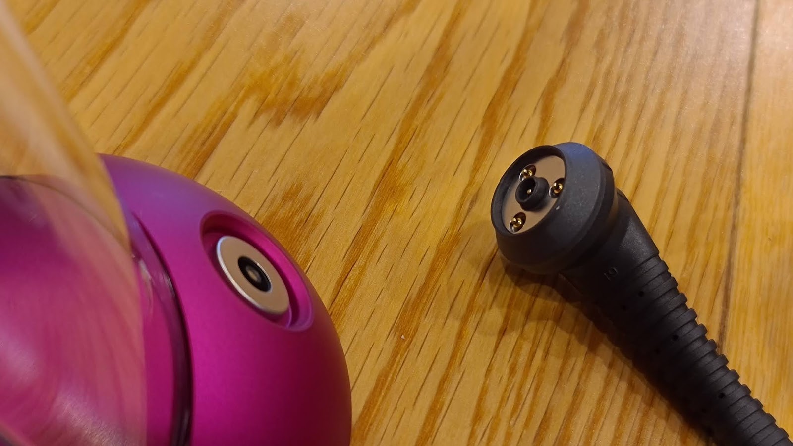 And cordless hair straighteners is a great idea. Even I can figure that out. Given most of us aren't ambidextrous, I'm guessing it's usually a lot easier to style one side than the other without the cord getting in the way. I've also been reliably informed by my willing test subject there's great advantage in being able to move from one room to another mid-straightening - the light is just better in there apparently. While the Corrale automatically charges every time you sit it back in its dock, if you somehow did manage to run it flat, the power cord simply unmagnetises from the base and magnets onto the straighteners themselves, powering and charging simultaneously. More simple genius.