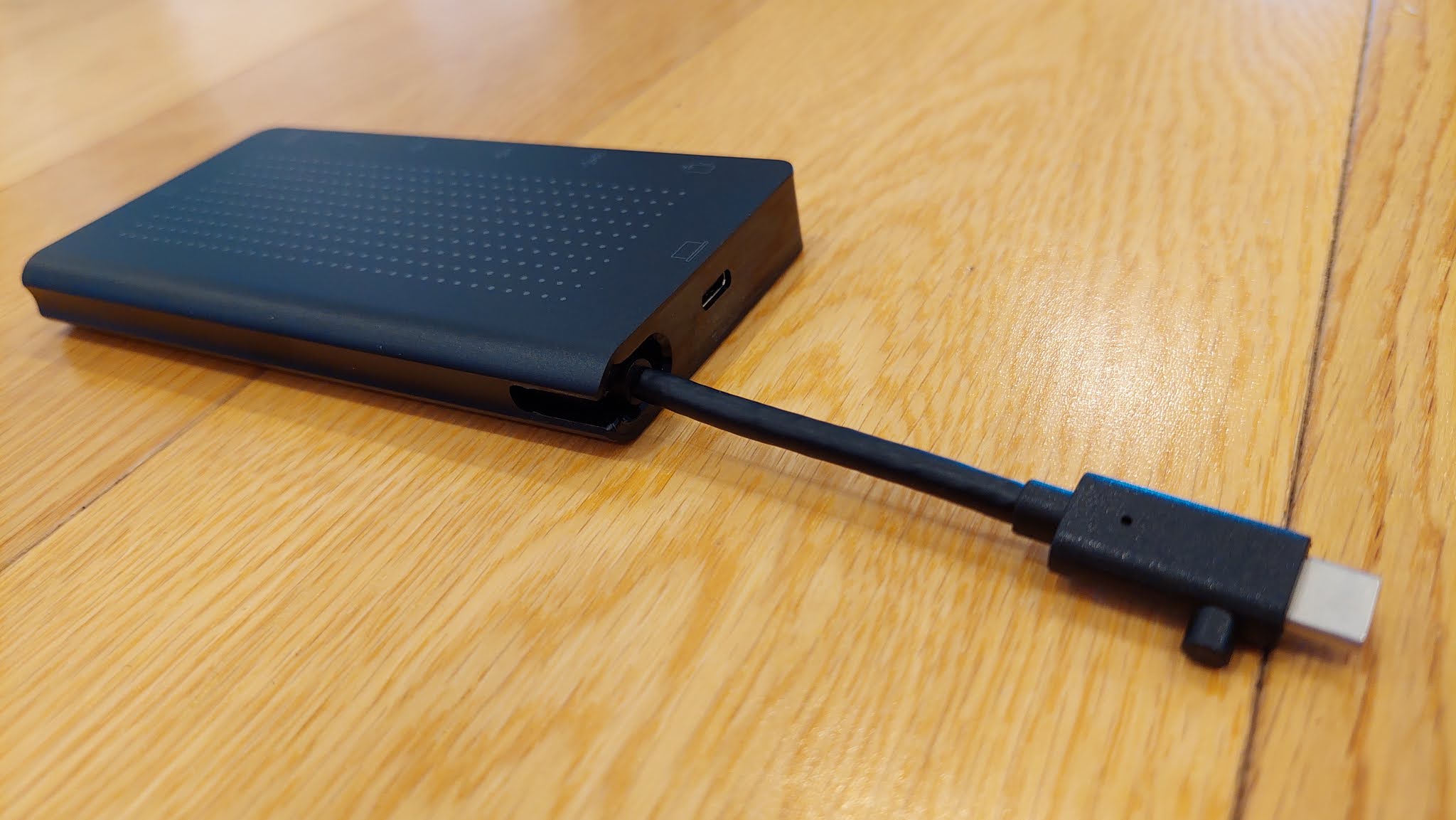 Not only does the StayGo hub come with a generous metre-long USB-C to USB-C cable, so you can tuck all your accessories and peripherals well out of sight but there's a shorter cable slotted into the device itself for compact and convenient travel purposes. Both cables are high quality, thick and sturdy and the longer one has a right-angled plug on one end, another piece of detailed design to help you keep things tidied away. The four rubber feet on the base keep the StayGo staying, (not going) on your desk and in short, I can't think of too many ways this accessory could work any better.