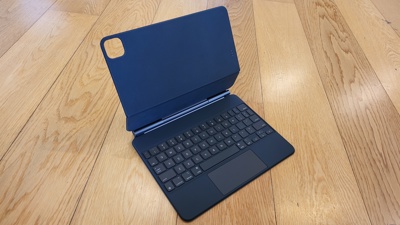 Somehow the Magic Keyboard's unique hinge and magnet system is firm enough to hold the iPad Air in place in exactly the right angle, suspended slightly above the keyboard itself. Not only does it provide well spaced keys with impressive travel but also a small, yet fully functional trackpad, complete with satisfyingly clicky buttons.