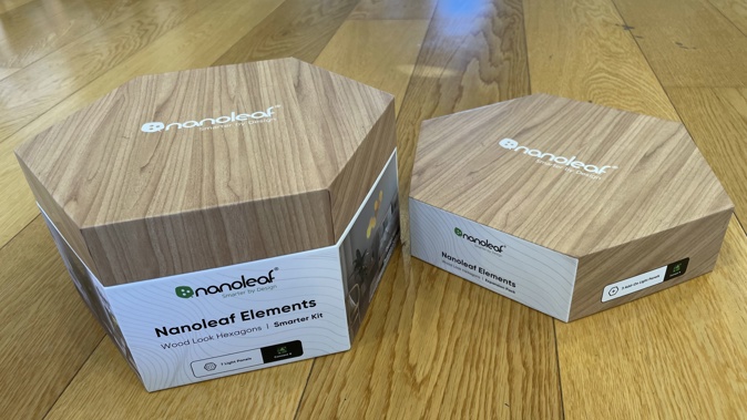 As the name clearly describes, while these particular Nanoleaf Elements are the same size and shape as the original hexagons, they now sport a tasteful, woodgrain veneer - similar in tone to that found on a lot of office furniture.