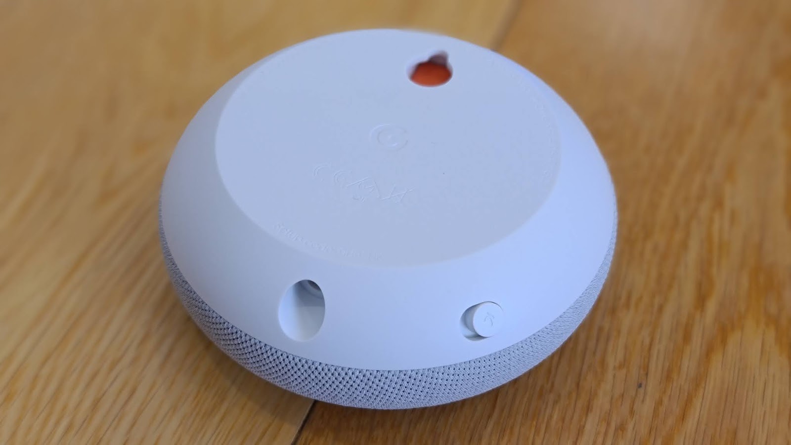 One of its only physical features is a simple wall mounting on the base if you really want to get it out of the way - bearing in mind it still needs a power cable attached. This is my main lingering frustration with most smart speakers at the moment; they're not rechargeable, therefore not portable. Rumour has it we will see more carry-about smart speakers on the market by the end of the year, so watch this space.