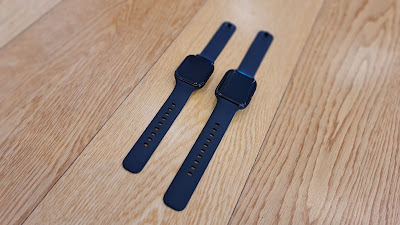 The other differences between the two models aren't quite so dramatic - the bottom case on the large one is ceramic as well as polycarbonate - I can't say I could feel the difference. Both come in black, with a Glossy Gold version of the 46mm and a Pink Gold choice for the 41mm. There's a slight difference in water resistance; 5ATM versus 3ATM so you can still swim lengths with either. Battery size is a bit more significant, 430mAh against 300mAh - but to be honest, I had no issue getting either watch to last through the day which is all I really need. The magnetic charging cradle does the job fast but to be perfectly honest, it's a bit large, quite ugly and the cable isn't very long.