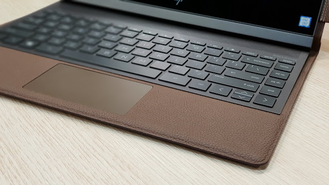 Perhaps most significantly, leather is a hell of a lot better at sopping up the disgusting hand oils that usually leave shiny, slippery patches under your palms on most laptops. With the Spectre Folio, not only are the areas your hands rest upon more comfortable, they're far less likely to feel moist and gross.