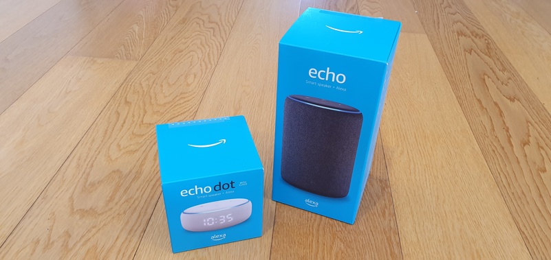While both speakers feature improved sound quality and upscaled microphone response, the most obvious new feature here is the addition of a visible clock on the Echo Dot, transforming it into the creatively renamed, Echo Dot with Clock. Again, subtlety and functionality is foremost - a simple, white digital display glowing from behind the fabric speaker covering. The brightness adjusts automatically according to the surrounding light conditions meaning nothing too glaring if you use this Dot as your bedside clock. If you do, an alarm can be set with a simple voice command, or you can choose to be woken by your favourite playlist, online radio station or maybe just a weather report. Alarms can be switched off with a simple tap to the top - the same way bedside clocks have been disciplined for decades.