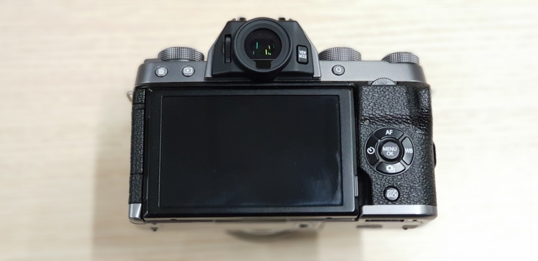 Of course, the cool thing about the X-T100 is you don't have to use that screen at all. There's an old-school viewfinder too. (Well, feels old-school, but obviously it's fully electronic) You can choose to use either the screen, the viewfinder or both - the camera automatically senses when you put your eye up to the viewfinder and changes the display accordingly. This always worked flawlessly.