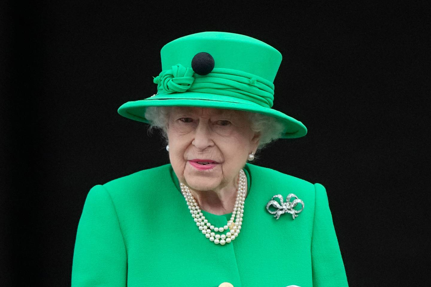 Queen Elizabeth II stands on the balcony during the Platinum Jubilee Pageant. Photo / APÂ
