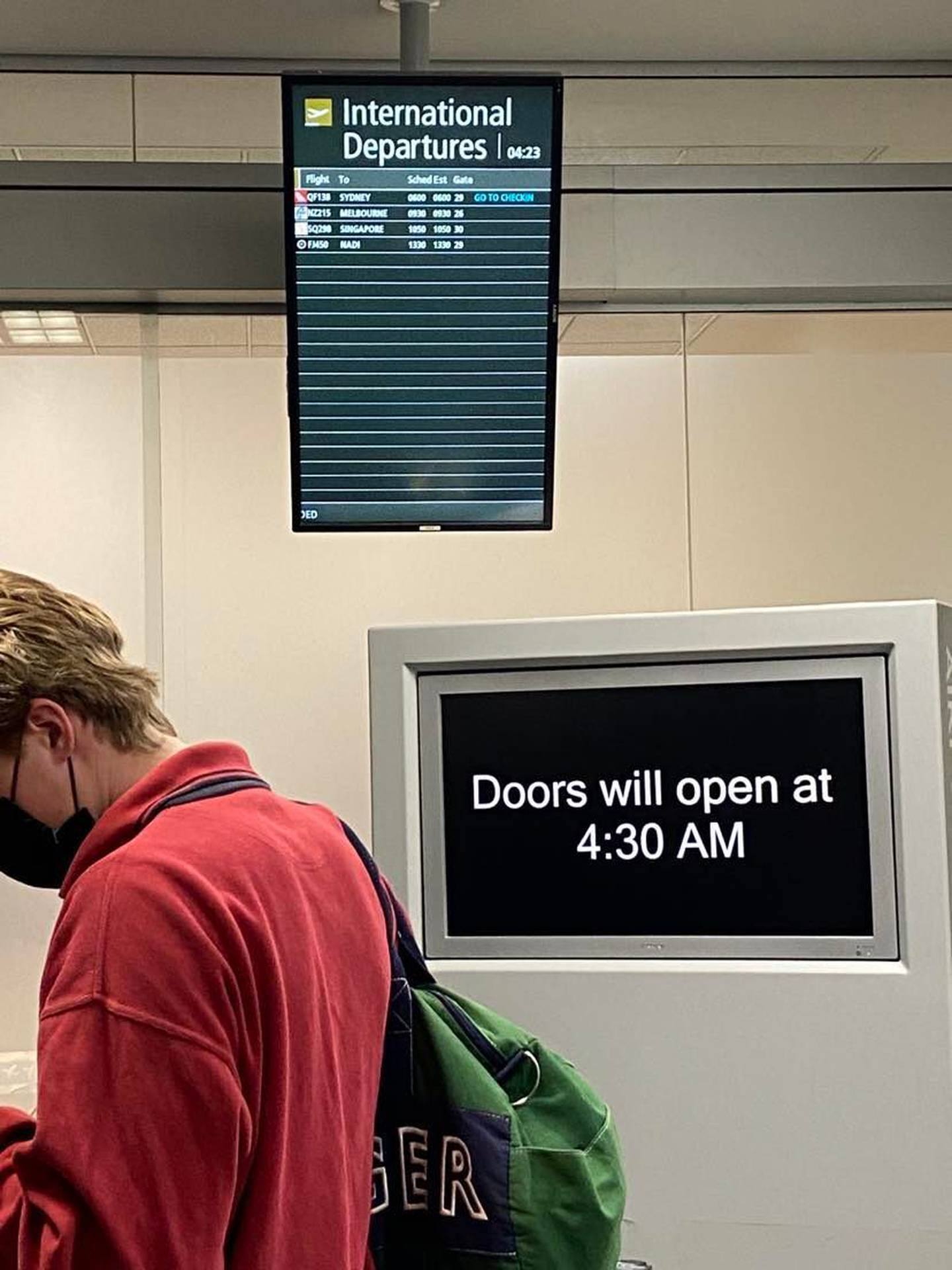 Waiting at the gates for the first international trip in over 2 years. Photo / Thomas Bywater