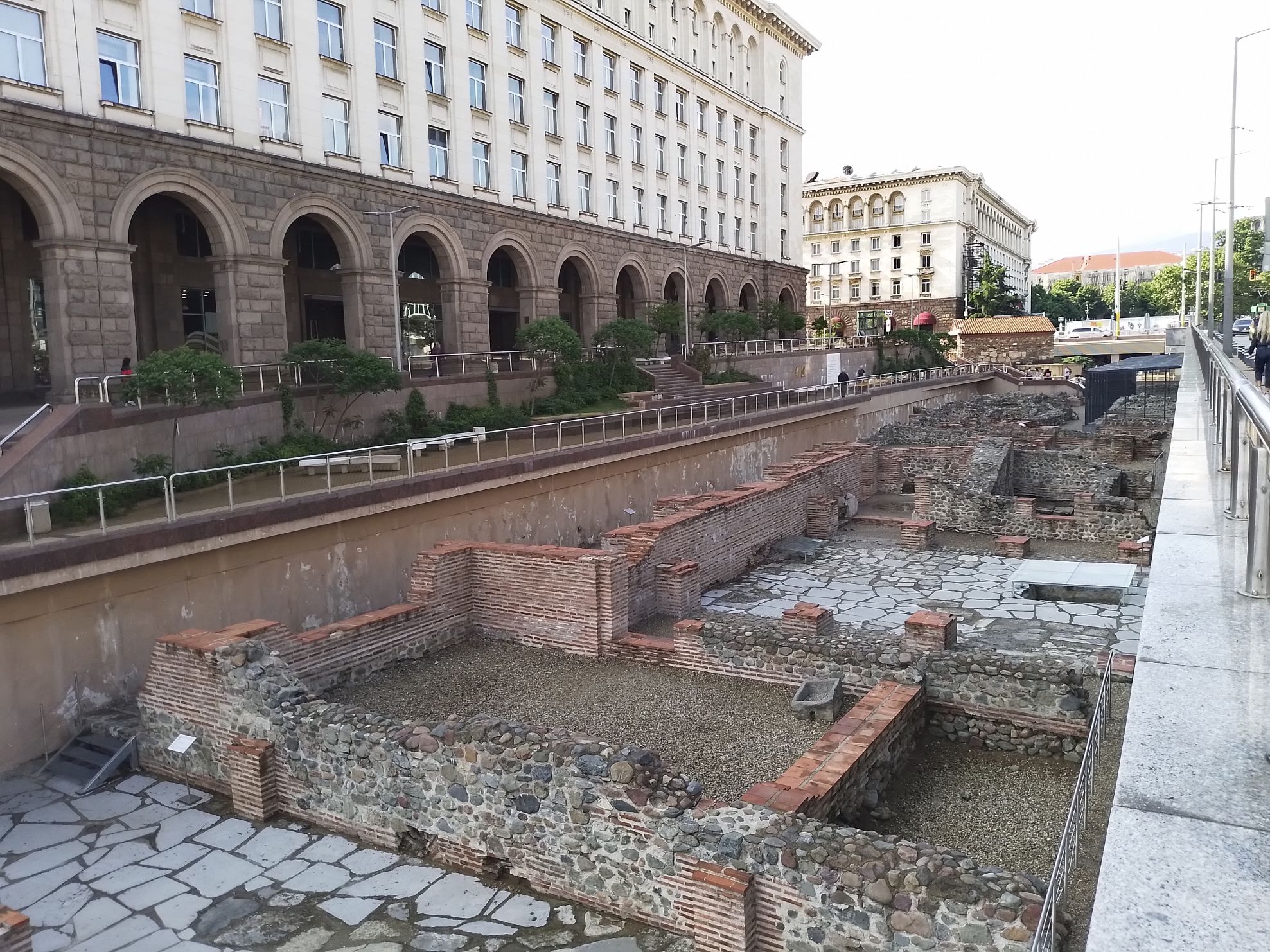 A priceless find was a Greek earthen jar, brimming with nearly 3000 silver and bronze Roman coins, dating back to the second century. Remnants of the ancient Roman city of Serdica have now been preserved and are on public display, flanked by boardwalks, around the Serdica Metro Station. The city's infrastructure is now being built around its archaeological treasures, rather than bulldozed.