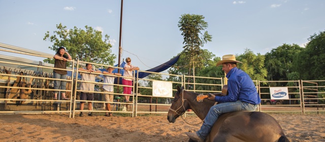 He first started to help break in horses for Janet Holmes a Court’s mammoth cattle empire, before working with a horse whisperer from the USA. The Katherine Outback Experience is the most enchanting fusion of his horse breaking finesse and entertainment flair. Tom’s wife Annabel is an integral part of the engaging demonstration, which is proudly unscripted, free-form and spontaneous, given they’re working with animals. Anything can happen!