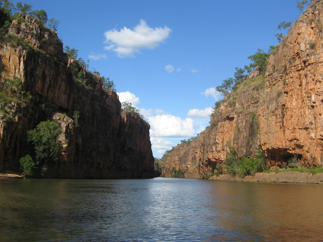 Just 20 minutes from the heart of town, Nitmiluk is the Aboriginal name for Katherine Gorge, flanked by soaring red sandstone walls stretching up to 70 metres high. The gorge was carved over millions of years by raging torrents of water swept down from Arnhemland, during monsoon rains. May to September is the dry season, and definitely the best time to visit, because the wet season routinely lead to monster flooding and restricted access in the park.