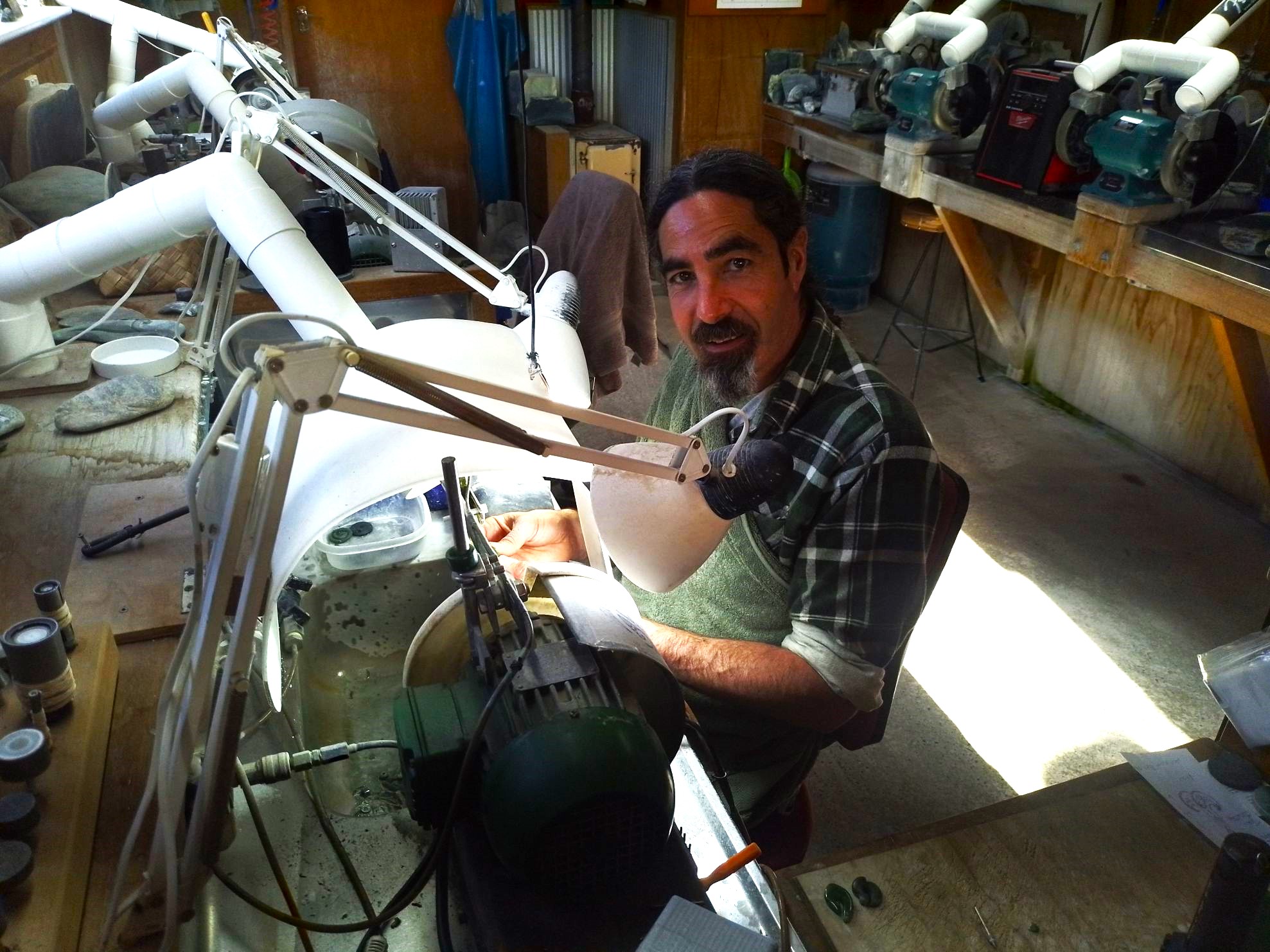 After feeling thoroughly illuminated on the backstory, I met up with one of the great pounamu carvers on the West Coast. Just out of Greymouth, on the road to Shantytown, I called into Garth Wilson’s studio gallery. His family connections with collecting and carving pounamu go back hundreds of years through the two hapu of Poutini Ngāi Tahu, Ngāti Mahaki and Ngāti Waewae. Since he was a small boy, Garth has gathered pounamu from the wild West Coast rivers and he personally carves all the artworks you can admire in his studio. He’s more than happy to chat to you while he works away on his beautiful pieces. It was Captain Cook that coined the name “greenstone”, but greenstone, jade and pounamu are all the same thing. What makes New Zealand pounamu so distinctive is its vast range of colours. I had not previously appreciated just how broad that colour palette is, until I perused Garth’s specimens. It’s not just green. For example, Tutuweka Pounamu has a distinct blood red colouring – found in the Arahura River. Kokopu Pounamu, also from the Arahura, takes on the similar grey spotted patterning of a speckled trout. And the intense greens of Marsden Flower Jade, from just outside Greymouth, are enhanced with yellow, orange and cream colourings in the stone. Garth’s magnificent pieces are all unique, whether you’re looking for traditional pendants, bracelets, cufflinks, earrings, rings or a custom-made one-off piece. Be sure to call in or shop on-line. https://garthwilsonjade.co.nz