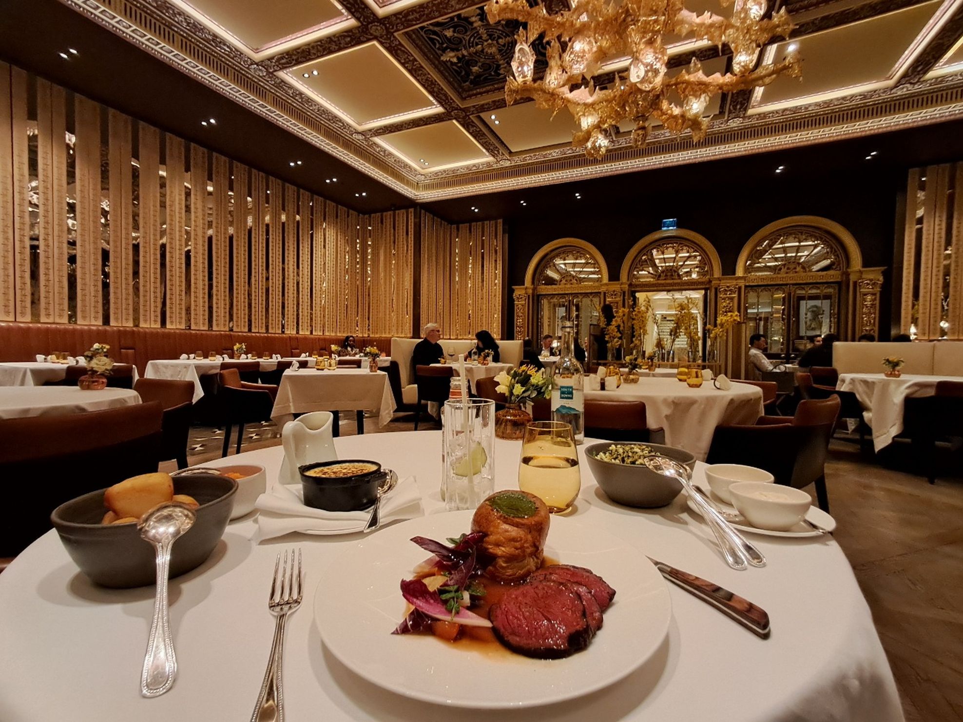 Trailing off The Promenade are entrances to The Grill, Vesper Bar, the three-Michelin-star Alain Ducasse at The Dorchester and restaurant China Tang. Whether you’re staying in-house or not, a London must-do is to partake in Sunday roast lunch at The Grill by Tom Booton. The restaurant is all bronzes and browns, with parquet flooring and a stunningly spidery chandelier. The Grill by Tom Booton is a celebration of bold British cuisine, classic dishes with a tasty and modern twist, from this red-hot Essex chef who is shaking Britain’s old standards. For a starter, I plumped for a cheese & onion doughnut with grape chutney. Unbelievably good! Miguel had warned me to pack a big appetite – and he wasn’t wrong, because the surfeit of sides that accompanies your main is astronomical.