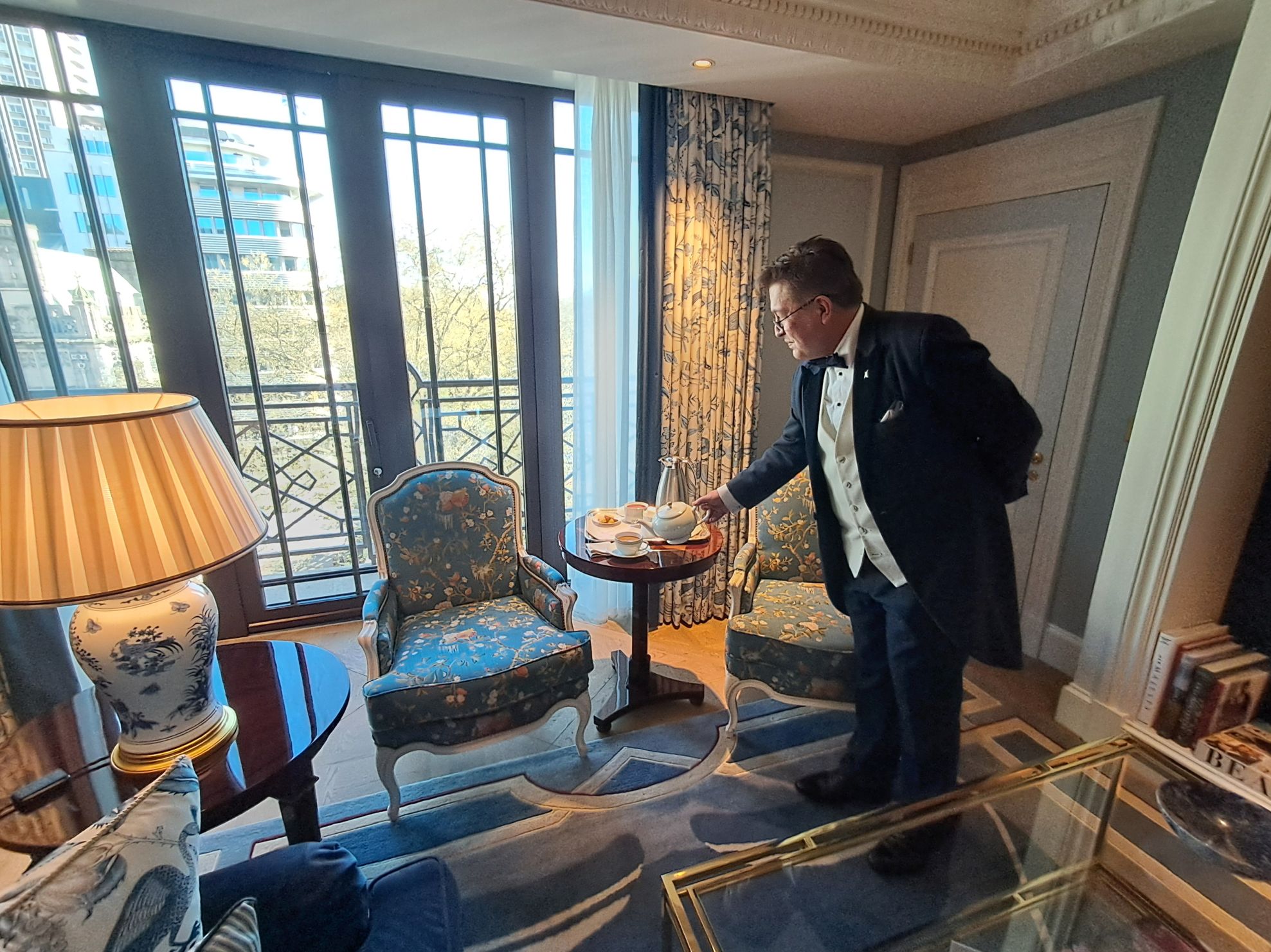Miguel the Butler serving tea in the suite. Photo / Mike Yardley
