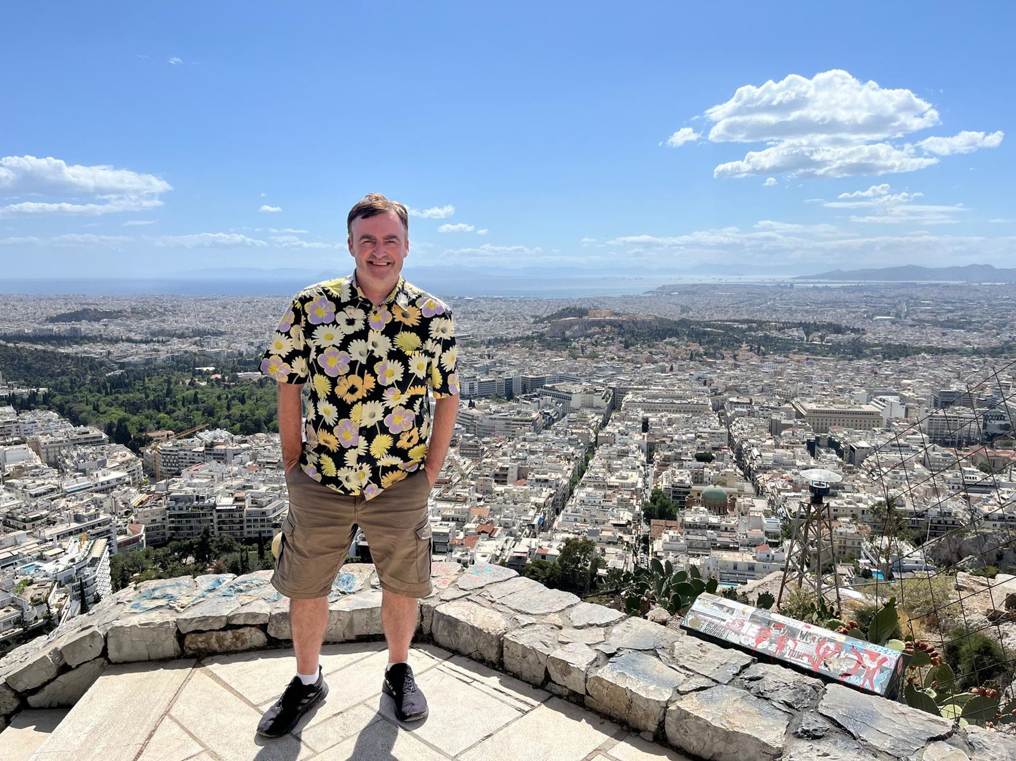 Mike at Lycabettus Hill lookout. Photo / Mike Yardley
