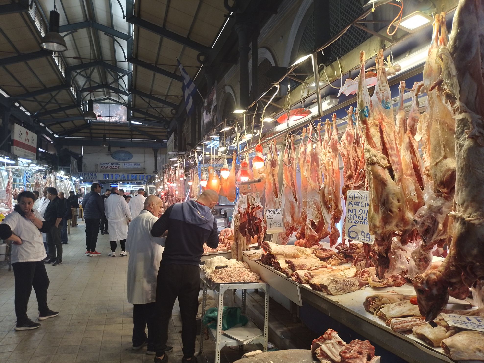 Meat Vendors at Varvakios Market. Photo / Mike Yardley