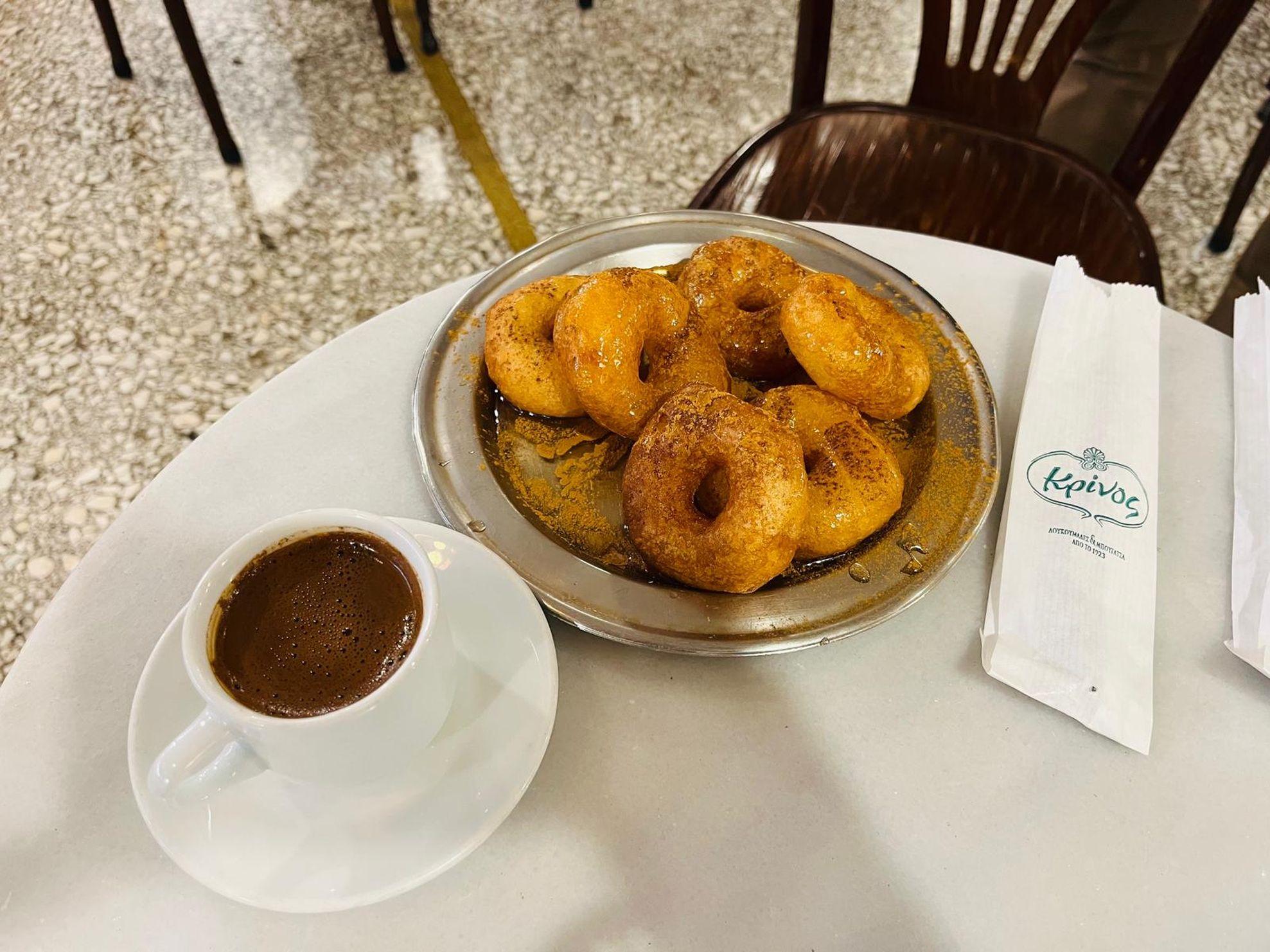 Coffee and loukoumades in Athens. Photo / Mike Yardley