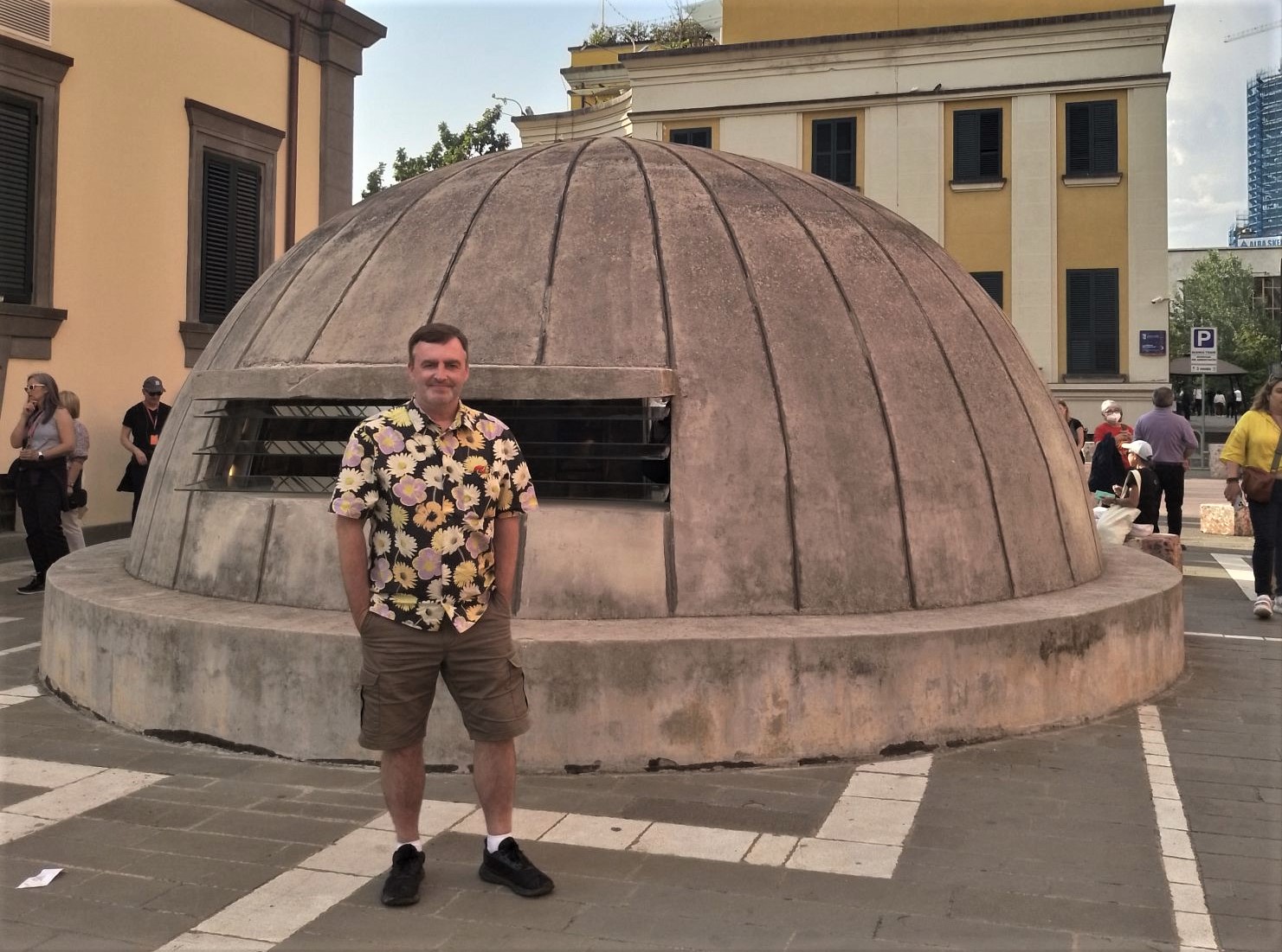 Mike outside a Tirana bunker. Photo / Mike Yardley