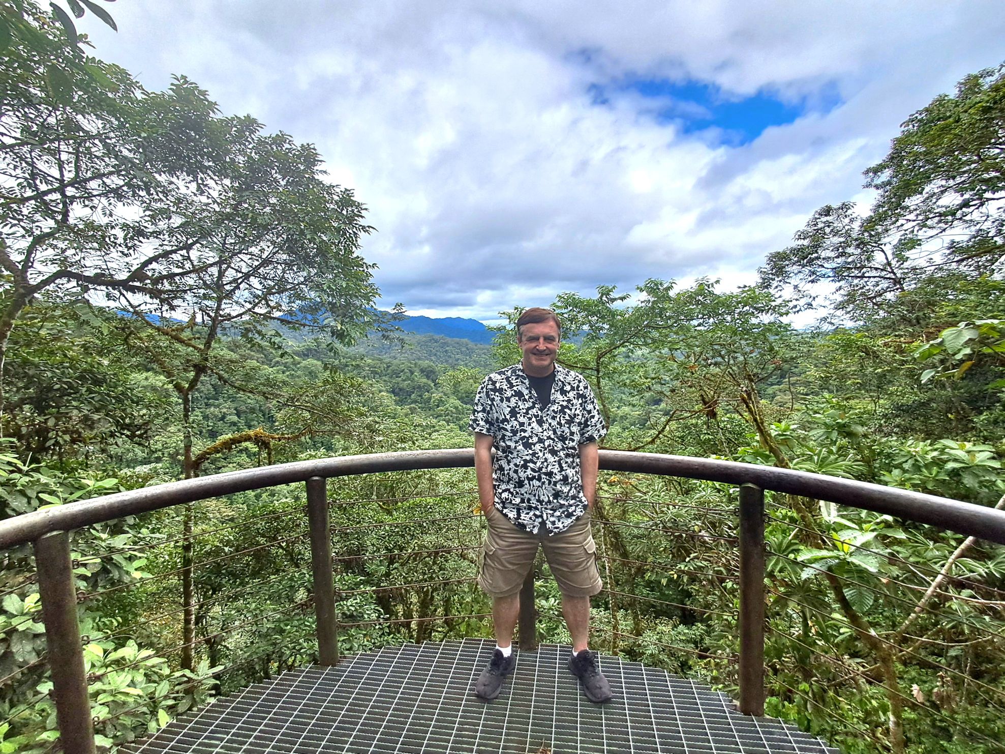 Mike surveys the setting at Mashpi Lodge. Photo / Mike Yardley
