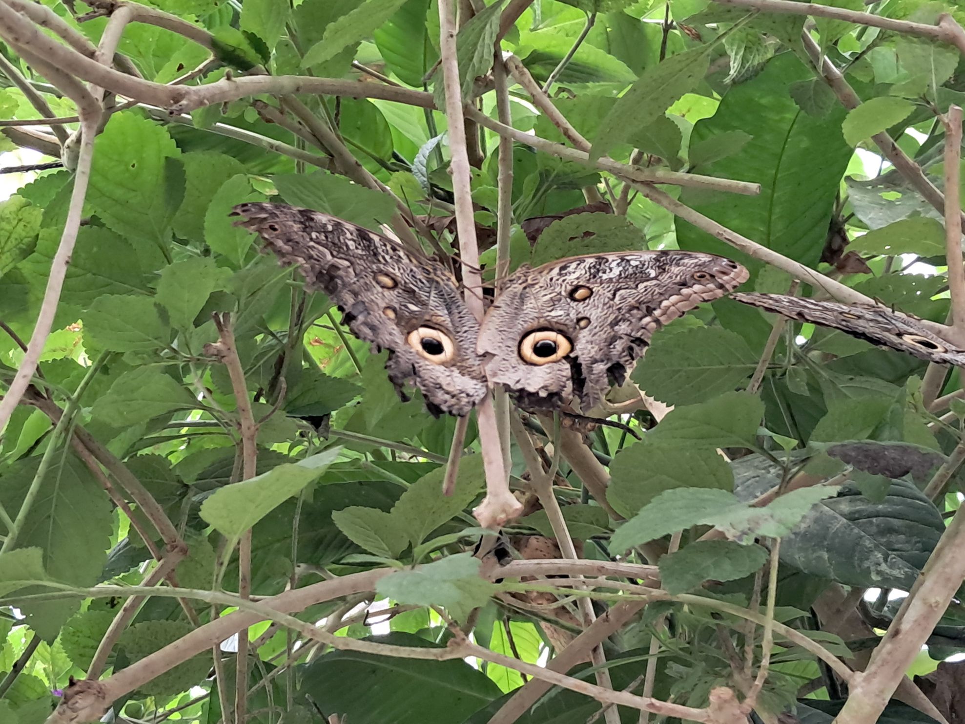 Two giant owl-eye butterflies. Photo / Mike Yardley