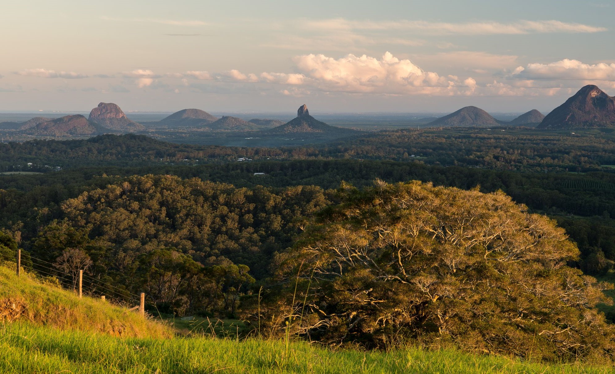 Sprawling out from Maleny, a stunningly green, undulating countryside, dotted with cows, interspersed with pockets of remnant rainforest, and offset by compelling bird’s-eye views of the Glass House Mountains. A must-do is Mary Cairncross Scenic Reserve, a spectacular rainforest with boardwalks threading through this fabulous reserve, abuzz with raucous tropical birdlife. The magnificent elevated viewing deck offers a dreamy panoramic outlook across the eleven thrusting vertical rocky columns of the Glasshouse Mountains.
