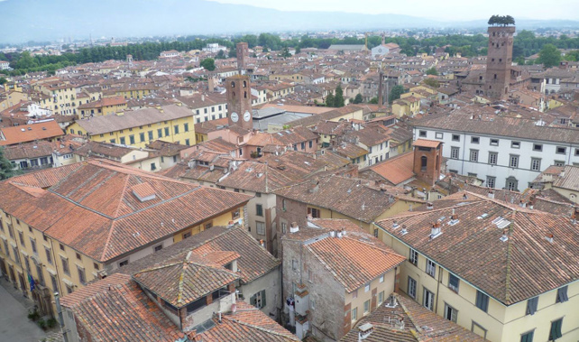 Tired of hauling yourself up steep, calf-crunching slopes to reach a Tuscan hill town? You’ll be in luck in Lucca, where scaling heights to savour the medieval magnificence of old-time Tuscany is not required.  As one of the few Tuscan towns not perched atop a vertiginous hill, it’s an effortless pleasure to explore on foot. Situated on a flat fertile plain, inland from Pisa, lolling about in Lucca first entails encountering its striking defensive walls.