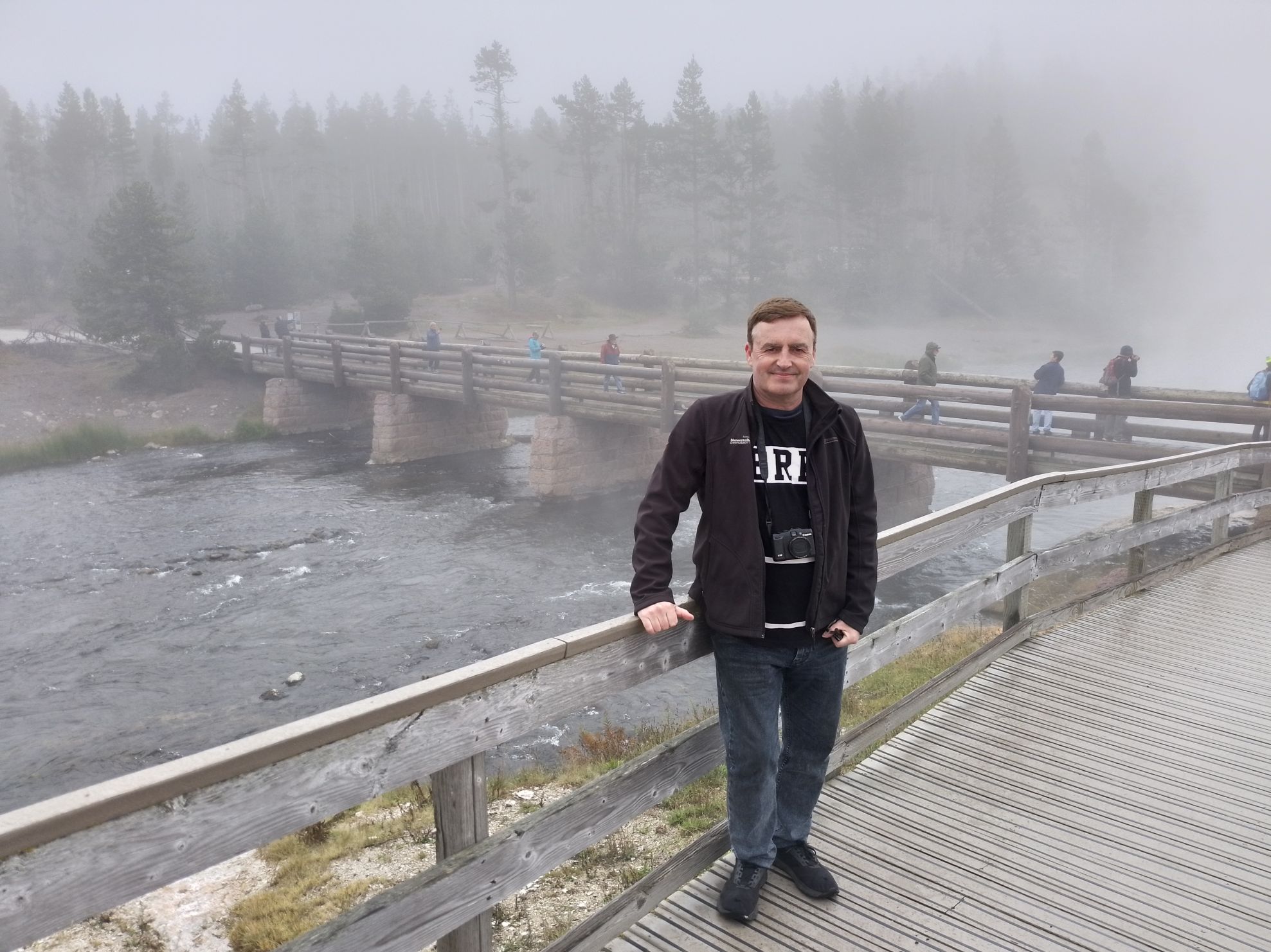 Mike enjoying a steamy dawn in Yellowstone. Photo / Mike Yardley
