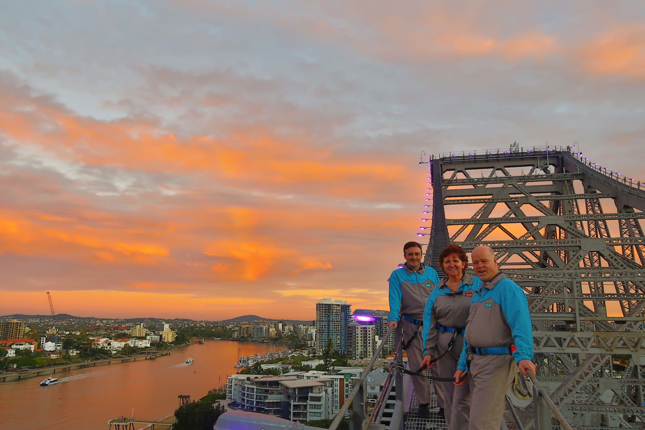 ferry to the leafy embrace of Kangaroo Point, I farewelled Leanne, because I had a hot date with a big bridge. I knocked off the Sydney Harbour Bridge climb some years ago, but this lofty ramble on a super structure will be an absolute highlight of your visit to Brisbane. Do it as twilight as the slumping sun gilds the city and the sky throws up bewitching hues like the pink tinged clouds. We lucked out big time on my walk, as we got a massive rainbow theatrically arching over the city, too.