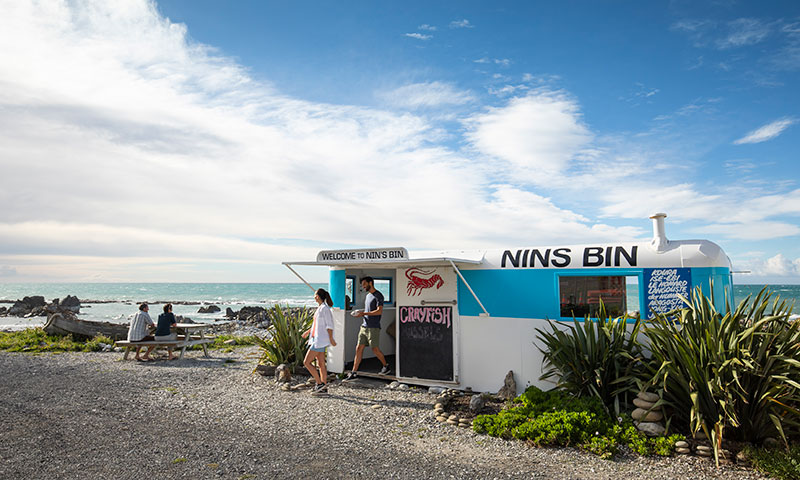 Kaikōura Crayfish. When tripping along the spectacularly scenic Kaikoura coastline on SH1, pull over to the roadside kiosk of Nins Bin for a fresh catch of cray. The catch quota is closely regulated by the season, so once they are gone, they're gone.